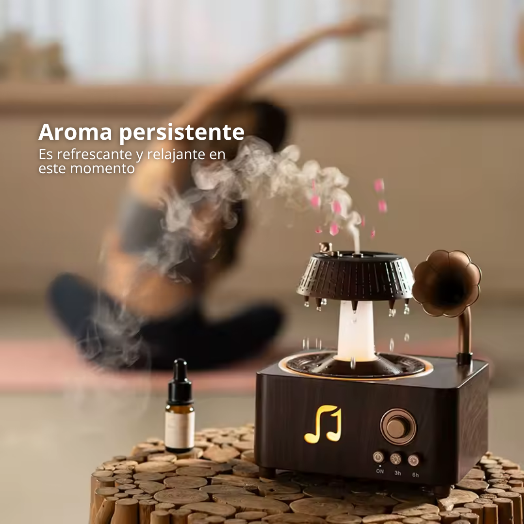 Solo abre la tapa, agrega agua y unas gotas de tu esencia favorita. Enciende el modo que prefieras (sonido, luz, niebla) desde el botón o con el control remoto incluido. ¡Y a disfrutar!